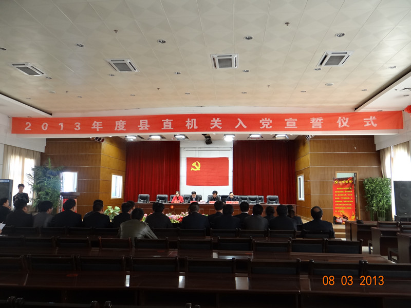 2013年3月8日,定边县直属机关工委在县计生局三楼会议室举行了隆重的新党员入党宣誓仪式,机关工委全体人员和县直机关基层党组织新发展的30多名新党员参加了宣誓仪式。仪式由直工委副书记宋扬同志主持。